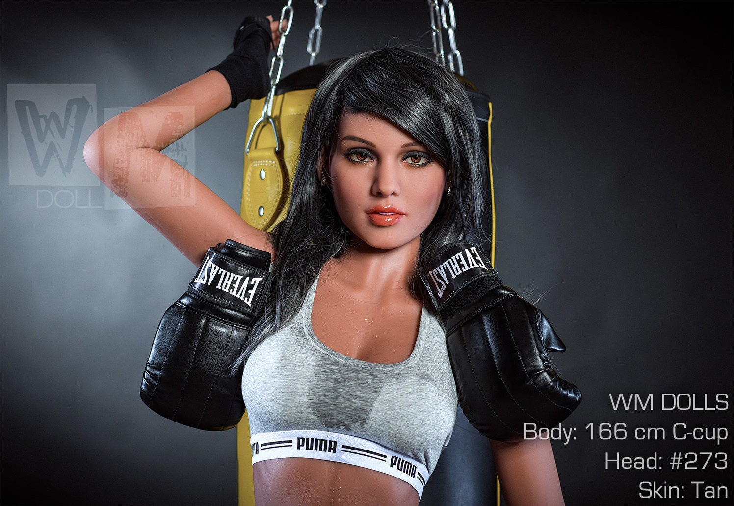 In the dim light of the training room, Ghala leans back against a heavy bag, her tan skin glistening with droplets that enhance every sculpted curve. With long dark hair cascading over her shoulders and a lean 166 cm frame, she exudes both athletic strength and irresistible allure. Her natural C-cup bust invites admiration while her gaze holds a teasing spark. This sex doll transforms raw energy into intimate passion, blending power with seduction in every detail.