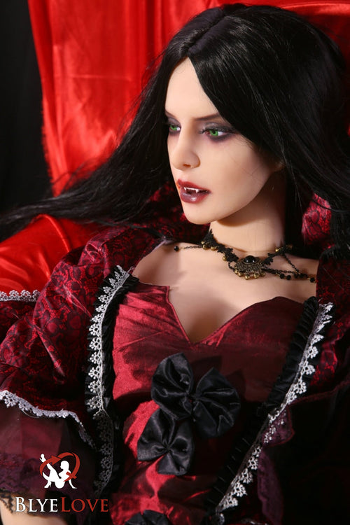 Draven, a stunning 170 cm goth vampire doll, who brings the allure of darkness into your world. With her hypnotic eyes and ghostly pale skin, she personifies the enigmatic charm of gothic tales. Every detail of Draven is crafted to perfection, reflecting her ethereal and untamed spirit. Ideal for collectors and fantasy enthusiasts alike, Draven invites you to lose yourself in a story of night-time romance and dark allure.